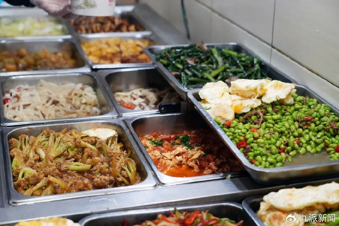 “清炒笋丝、宫保鸡丁……”中午11点多,福庆和店内与厨房相接的位置照常排开20余道炒菜,一位男士报着女儿今天的“点菜单”,可惜没有宫保鸡丁,换成了其他。