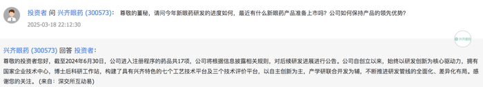 兴齐在三季报中提到业绩增长原因,主要是0.01%硫酸阿托品滴眼液获批上市,收入实现增长所致。