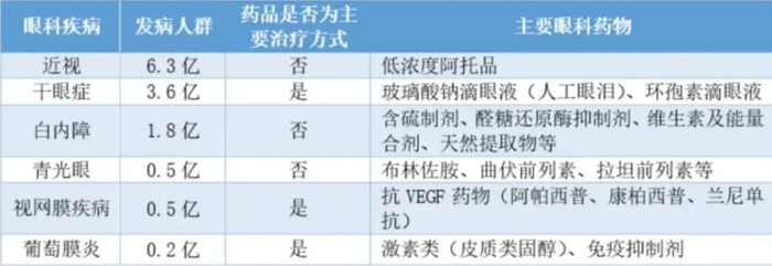 眼科疾病患者基数庞大,仅近视、干眼症、白内障三大疾病患者已超10亿人。