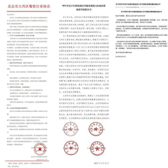 近期,江西、陕西、北京、辽宁、山东等五个省市,19家餐饮行业协会纷纷发布公开信,呼吁美团等外卖平台降低佣金。大连市美食文化协会在倡议书提到:经各协会联合走访调研,大部分餐饮经营单位均表示,现有市场上如美团、饿了么等主流外卖平台的综合服务费率(包含外卖佣金等)接近20%,已使约70%以上的餐饮商户和近90%的社区小微餐馆面临经营压力。而山东滨州市饭店烹饪餐饮协会则在倡议书中表示,餐饮协会一直不断接到各类餐饮企业关于美团等外卖平台20%-26%的佣金费率大幅度挤压商户利润空间的反馈。不过,上述倡议书随后均被删除。