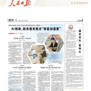 今天,《人民日报》刊发了题为《AI相助,政务服务“智能加速度”》的报道,介绍深圳、苏州、杭州三市有关情况。《广东深圳: 问政策,找“深小i”挺方便》一文,报道了深圳利用人工智能大模型等技术升级政务服务系统,从“民意速办”进阶“企事速办”,探索AI相助下给深圳政务服务带来了哪些新变化。以下是全文。