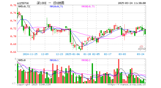 深证100ETF华安(159706)跌1.81%,半日成交额10.95万元