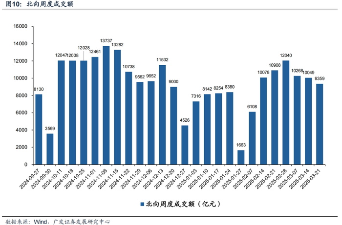 北向资金本周成交额继续减少。本周(3月17日—3月21日)北向资金总成交金额为0.94万亿元,日均成交额为1871亿元,较上周日均成交金额减少138亿元。