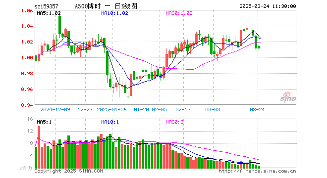 3月24日,截止午间收盘,中证A500指数ETF(159357)涨0.00%,报1.011元,成交额4992.56万元。中证A500指数ETF(159357)重仓股方面,江淮汽车截止午盘跌0.79%,科大讯飞涨0.31%,金山办公涨0.89%,上汽集团跌1.37%,通威股份跌1.39%,万科A跌2.17%,中际旭创涨0.33%,华大基因跌2.38%,深信服跌2.17%,中国海油涨1.00%。