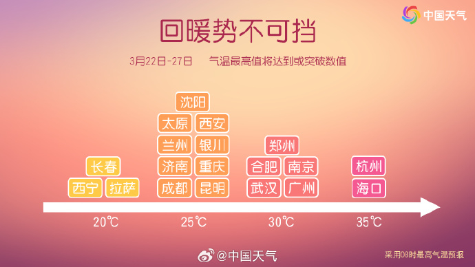 24日至26日白天:晴到多云。最高气温由26~28℃升至32~34℃,最低气温由14~16℃升至19~21℃,偏南风3到4级、阵风5到6级。