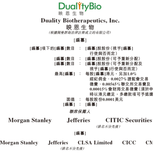 2025年3月23日,总部位于上海的映恩生物 Duality Biotherapeutics, Inc.(简称“映恩生物”)在港交所披露聆讯后的招股书,或很快在香港IPO上市。其于2024年8月26日、2025年2月27日先后两次递表。