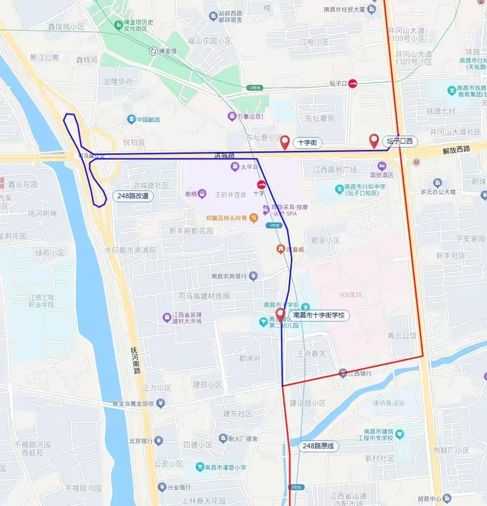 为解决原248路在十字街线路有来无回的问题,优化调整248路