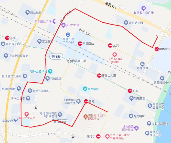 2.调整后线路走向:南昌西站—石钟山路—西站大街—黄岗山路—九江街—九龙大道—会昌路—永安一路—卧龙路—红谷南大道—前湖大道—赣江中大道—岭口路—丰和中大道—翠苑路—红谷中大道—世贸路—赣江中大道—会展路—红谷中大道—春晖路—丰和北大道—黄河路;