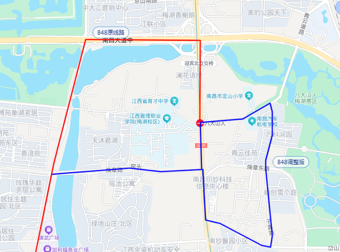 优化调整848路,满足梅湖景区周边小区前往八大山人地铁站的出行需求