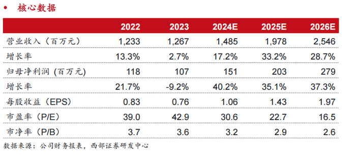 综上所述,我们预计天山电子2024-2026年营收分别为14.85/19.78/25.46亿元,归母净利润分别为1.51/2.03/2.79亿元。