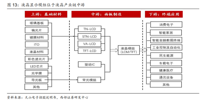 2.1 液晶显示模组处于产业链核心环节,可分为单色/彩色显示