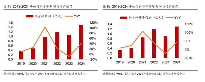 利润端:归母净利润方面,公司归母净利润由2020年的0.48亿元增长至2023年的1.07亿元,CAGR为30.94%;根据公司业绩快报,24全年公司归母净利润1.50亿元,同比+39.97%;扣非归母净利润方面,2024年公司全年实现扣非归母净利润1.30亿元,同比+44.13%。