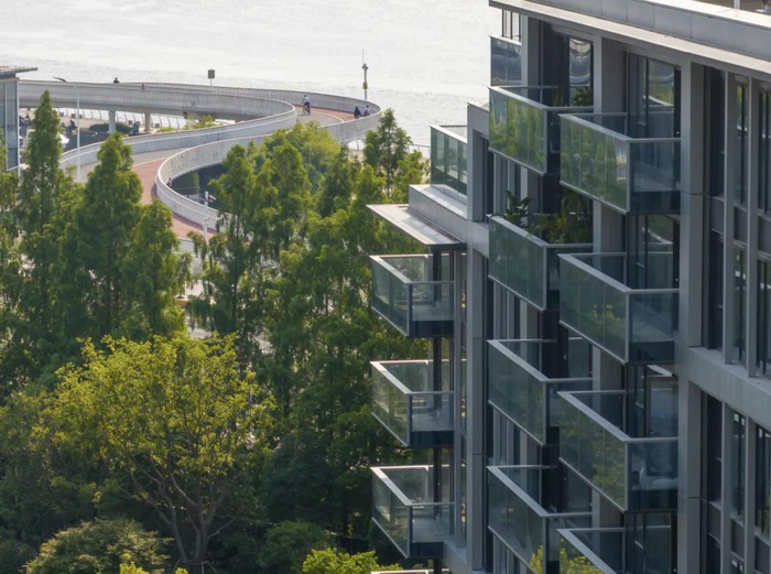 徐汇的滨江小区就是一个典型,第一排的四层小楼距离黄浦江不到100米,尽享一线江景。