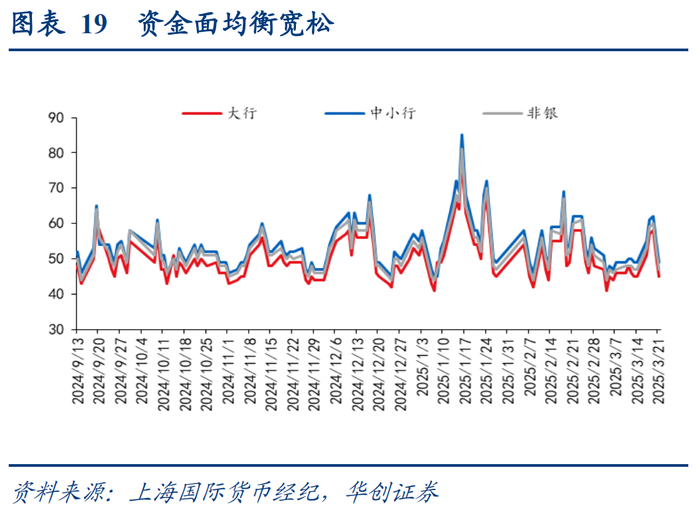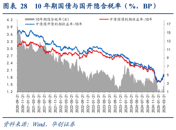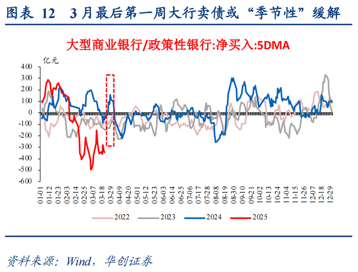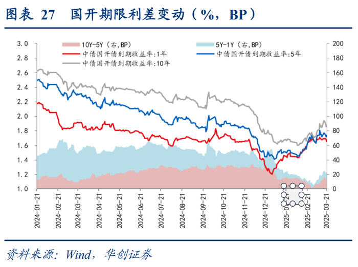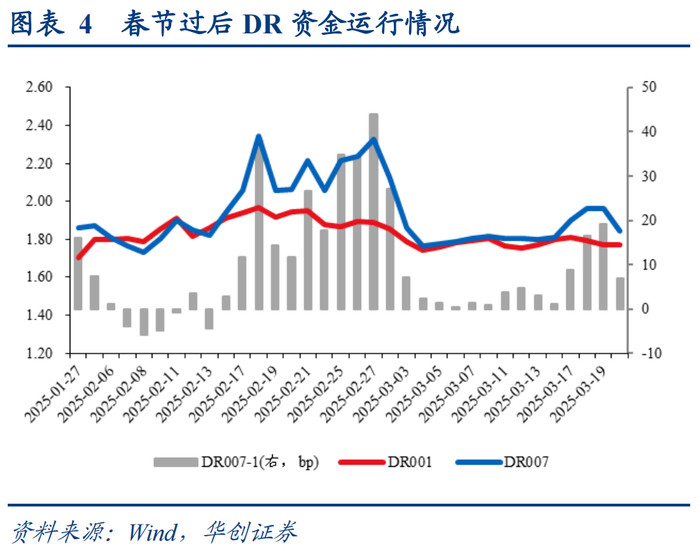 但交易盘没有太多空间,主要观察资金价格。目前10y和30y国债基本回到12月上旬央行提及“适度宽松”、市场尚未显著抢跑的位置。考虑当前央行维持DR007在1.8%水平并未显著影响实体融资量价及稳增长操作,进入4月DR007或仍高于政策利率OMO 20~30bp,仍高于2024年11-12月1.6%-1.7%的位置,则长端品种并无明显交易空间,10y国债或仍维持1.8-1.9%的震荡区间平稳跨季。