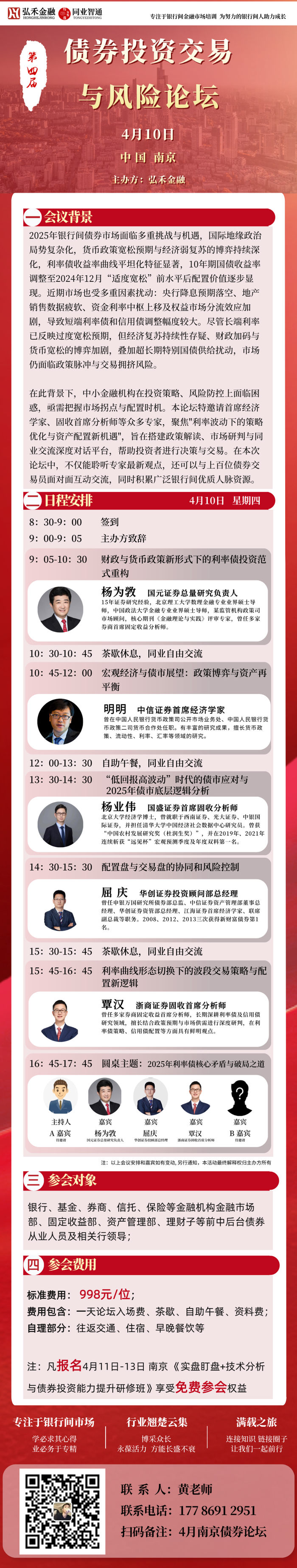 注:凡报名4月11日-13日 南京 《实盘盯盘+技术分析与债券投资能力提升研修班》享受免费参会权益