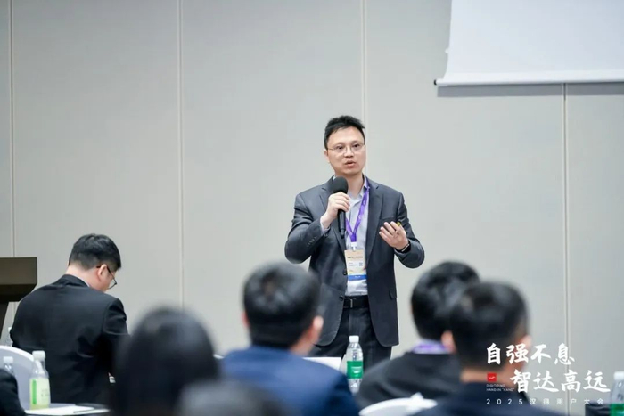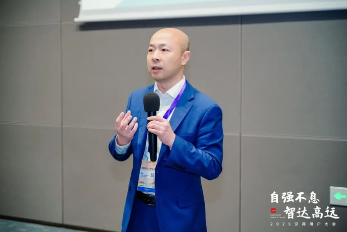 因湃电池科技有限公司总经理许俊海在大会现场,详细介绍了因湃电池数字原生标杆智慧工厂建设实践案例及经验分享。他强调,因湃坚持“数字原生”理念,高标准建设因湃智慧工厂,通过与汉得的全面数智化合作,提出“四同时”概念:数字化建设与工厂建设、产线导入、产品开发同步推进。统一平台化建设,减少异构系统,零代码、低代码的运用,让业务员成为程序员,实现系统快速迭代,软件常用常新。