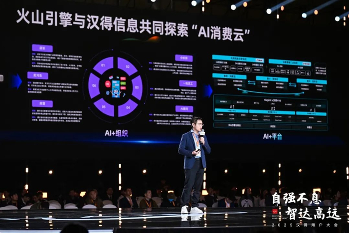 火山引擎AI生态解决方案负责人朱峰亦在题为《AI Agent 引领产业智能化升级》中提到,火山引擎将与汉得信息共同探索“AI消费云”,基于豆包大模型的底座能力,叠加汉得信息全面的B端产品/服务能力,专注消费领域企业细微业务场景的创新与改变。