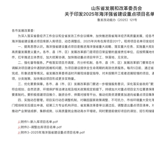 「风电之音」获悉,近日,山东省发展和改革委员会发布关于印发2025年海洋强省建设重点项目名单的通知。