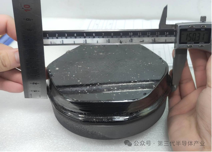 液相法碳化硅晶体生长技术在扩径和长厚方面具有天然的优势。由于其生长原理、物质传输特性及热力学稳定性等因素,使得晶体易于扩径至8英寸及以上尺寸,同时也能够实现较厚晶体的生长,极限长晶厚度可达6cm以上。这对于满足未来大尺寸碳化硅器件制造的需求具有重要意义。大尺寸、厚晶体的碳化硅材料,能够提高器件的性能和可靠性,为高端半导体器件及光学应用的研发和生产提供了更广阔的空间。