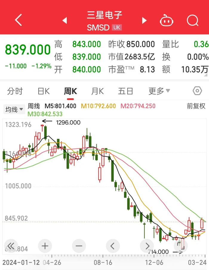 各种负面消息让投资者对三星失去信心,三星电子在过去一年中,股价暴跌近三分之一。