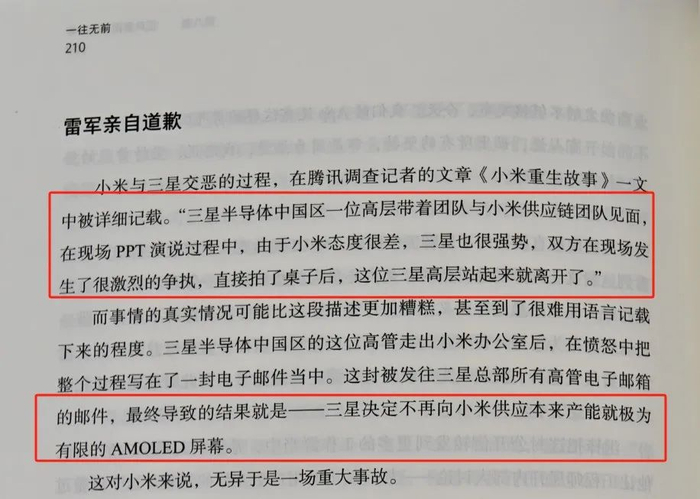 9年前,雷军为了让三星给小米手机供应AMOLED屏幕,亲自向三星中国区的一个高管赔罪,并数次飞往韩国三星总部道歉。