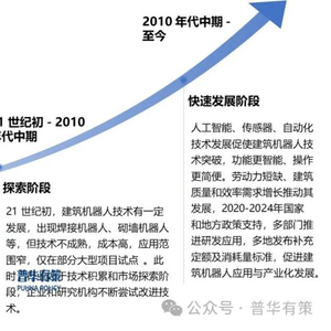 建筑机器人行业发展历程历经萌芽、探索和快速发展阶段。萌芽期以简单机器人的出现为标志;探索期技术发展缓慢但为后续进步奠定基础;快速发展期在技术、政策和市场需求推动下,行业迎来高速发展。