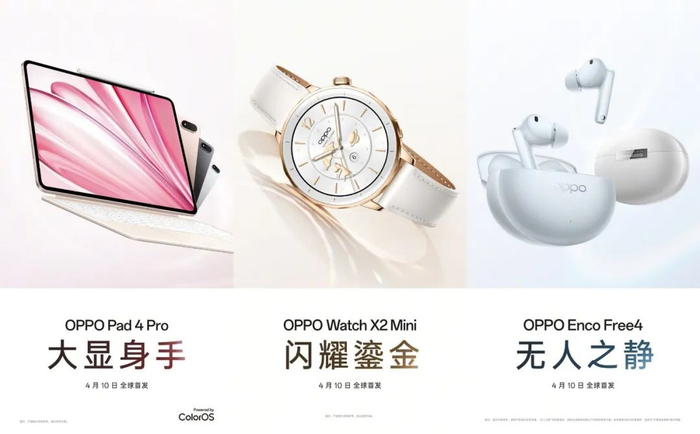 今日,OPPO官宣全新Find X8系列暨移动智能生态新品发布会将于4月10日举行,据了解除了Find X8系列三款新机外,这次智能生态也会带来多款新品,包括但不限于平板电脑OPPO Pad4 Pro、智能手表OPPO Watch X2 mini、新款耳机OPPO Enco Free4等,今日外观也有预热。