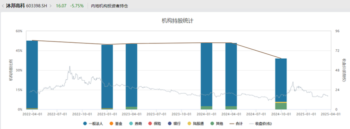 当然,趁机跑路的还有不少机构投资者。用Wind统计来看,2024年4月1日到10月1日,沐邦高科的机构持股骤降。