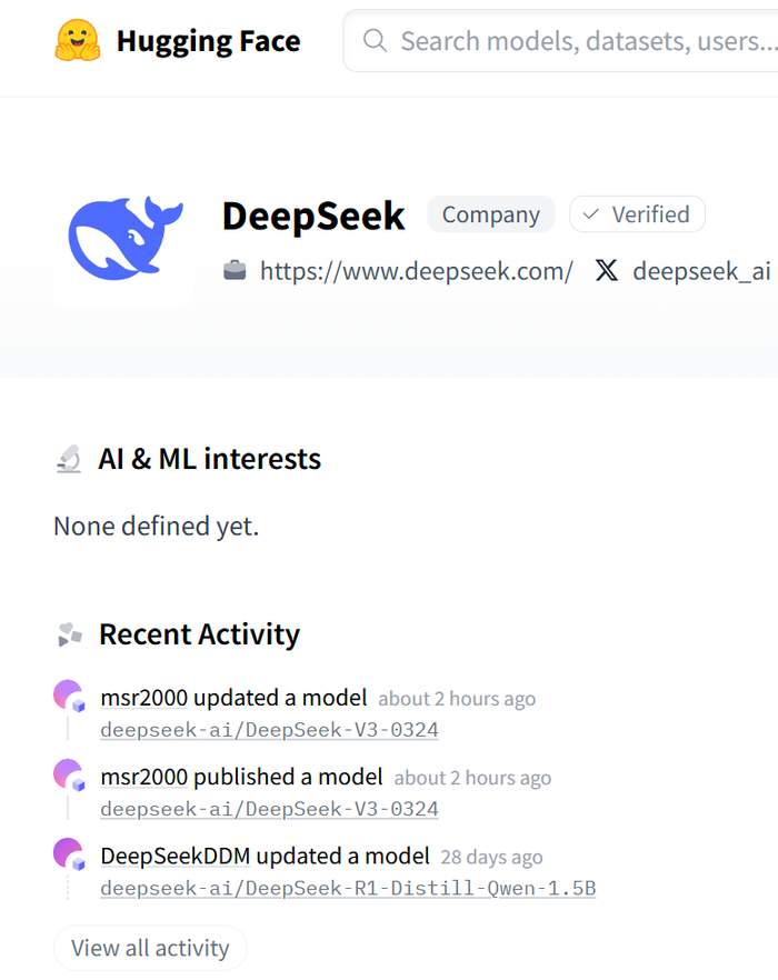 3月24日晚,DeepSeek发布了模型更新——DeepSeek-V3-0324。本次更新为DeepSeek V3模型的版本更新,并非市场此前一直期待的DeepSeek-V4或R2。目前,其开源版本已上线Hugging Face。据悉,其开源版本模型体积为6850亿参数。
