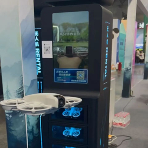 李渊洁现场展示了无人机的使用方法。在一台高约1.5米的黑色共享无人机柜中,放置了5台无人机。只需要打开支付宝或者微信“扫一扫”,通过少量押金申请,扫码取出无人机,再通过蓝牙模式连接手机与无人机就可使用,整个过程用时5分钟。而这款无人机的使用方法极其简单,连接手机后,无人机会跟随人行动,最远跟随距离在30米内。如果需要环绕、冲天、渐远、定向跟随、聚焦等模式,只需要在手机APP上点一点,操作简易。