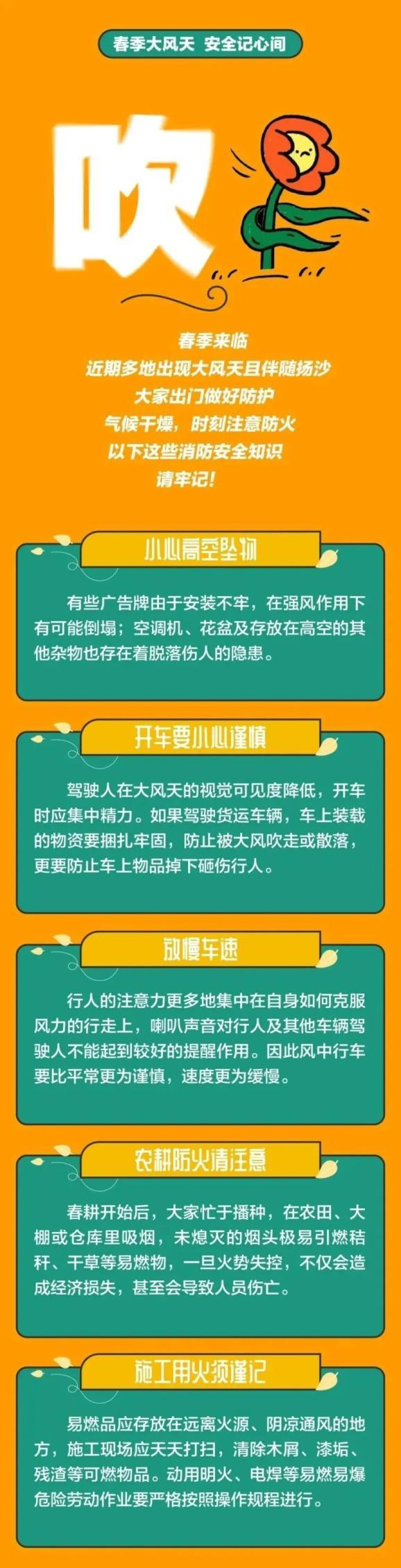 大风会给工农牧业生产和交通运输造成危害,火灾的风险也会增加,是我国主要灾害性天气之一。春季大风天气频发,如何做好安全防护?