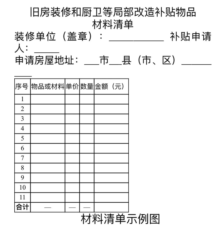 申报旧房装修补贴必须要具备装修(服务)合同。可以是与装修公司签订的全包/半包装修合同,也可以是与材料供应商签订的安装服务合同,也支持与装修施工人员签订的装修施工合同。与装修施工人员签订的装修施工合同内容需涵盖具体装修施工内容及装修工人姓名、手机号,便于审核人员核查。