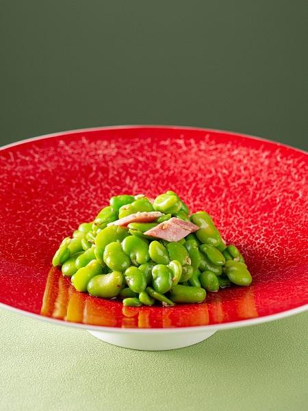 三月同样是品尝蚕豆的好时节,深谙美食之道的老饕都晓得,吃蚕豆讲究一个“早”字。有着150年历史的中华老字号上海老饭店,大厨们深挖传统风味,将蚕豆与俗称“刀板香”的咸肉巧妙组合,烹制出一道“刀板香豆瓣”。这道菜香气扑鼻,蚕豆色泽翠绿,卖相十分诱人。“这道菜看似朴实无华,实则风味独特。”上海老饭店厨师长罗玉麟介绍,“刀板香”之名,源于切过这块肉的刀板都会留存香味。独特的腌制风干工艺,让猪肉在时间的沉淀下,生出醇厚脂香,肉质富有嚼劲,色泽纹理温润。蚕豆瓣与肉一同烹制后,也变得酥香可口,“不少顾客反馈,这道菜里的素菜比荤菜还美味。”