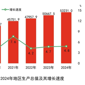 根据地区生产总值统一核算结果,全年地区生产总值[2] 53231.0亿元,比上年增长4.8%。其中,第一产业增加值4899.7亿元,增长3.0%;第二产业增加值19534.6亿元,增长5.7%;第三产业增加值28796.7亿元,增长4.5%。人均地区生产总值81225元,增长5.3%。