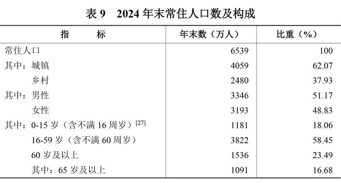 [27]2024年末,全省0-14岁(含不满15周岁)人口为1084万人,15-59岁(含不满60周岁)人口为3919万人。