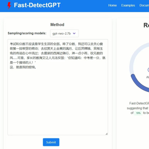 目前的Fast-DetectGPT演示版使用的是开源小语言模型GPT-Neo 2.7B,说它“小”,是因为模型的参数只有27亿个。如果使用更强的模型,比如671B的满血版DeepSeek-R1,理论上识别准确率就会更高。
