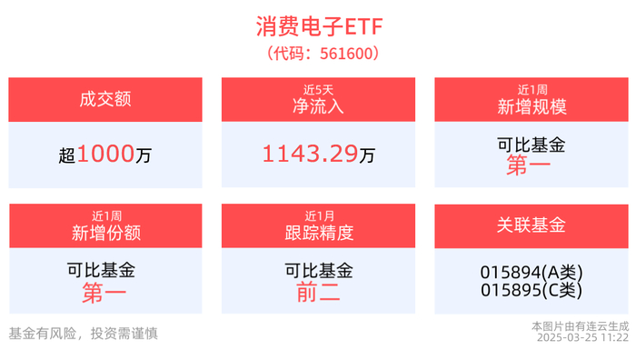 消费电子ETF(561600),场外联接(A类:015894;C类:015895)。