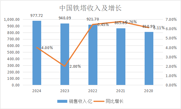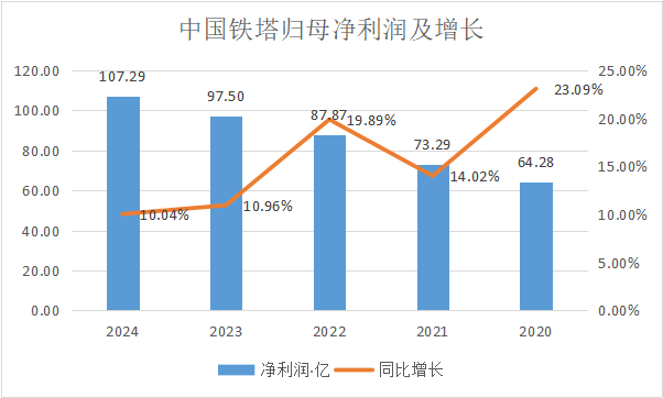 中国铁塔整体业绩跟预期一致,保持稳健的增长,归母净利润保持低双位数增长。24年铁塔实现收入977.72亿,同比增长4%,归母净利润实现107.29亿,同比增长10.04%。业绩基本符合预期。