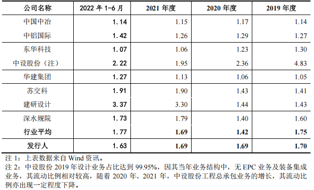 报告期内,公司与同行业公司的流动比率情况如下: