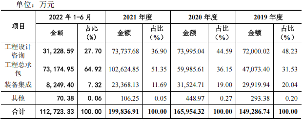 从 2021 年行业各细分领域的收入构成角度看,工程总承包收入金额约40,041.6 亿元,占比约为 84%;工程设计收入金额约 5,745.3 亿元,占比约 12%;