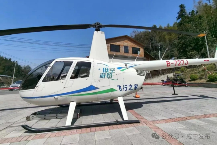 “坐上直升机,去看野樱花……”3月23日下午,一架直升机停在崇阳县铜钟乡大岭村村委会门前,引来游客阵阵欢呼。