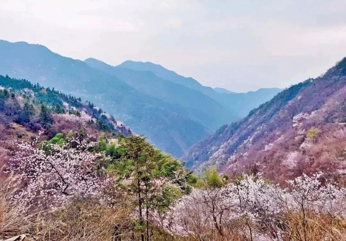 大岭村位于崇阳龙泉山腹地,山间拥有华中规模最大的野生樱花群落。每年3、4月间,连绵起伏的山峦被粉白花海覆盖。
