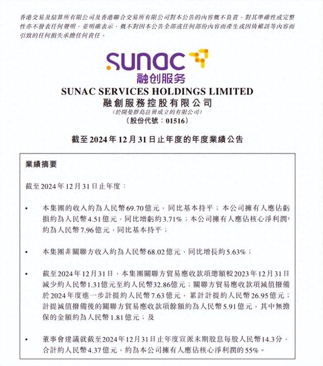 融创服2024年业绩:收入约69.7亿元,分红4.4亿