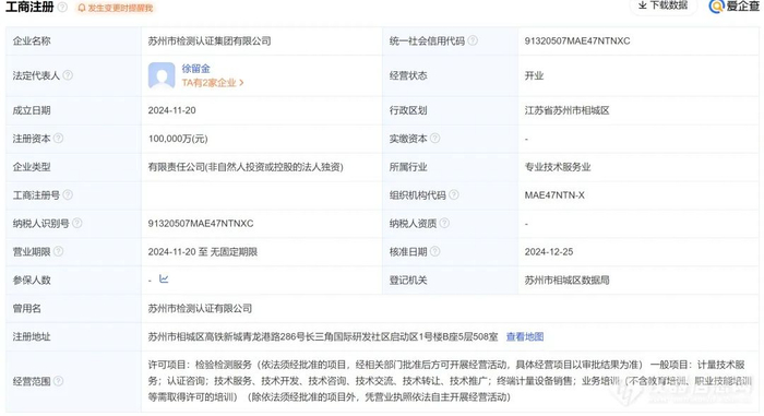 爱企查 | 苏州市检测认证集团有限公司 工商信息