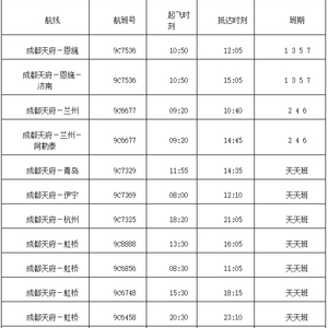 附:春秋航空成都进出港航线时刻表供参考,具体班期请以春秋航空APP、小程序为准。