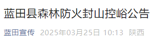 蓝田县森林防火封山控峪公告