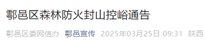 鄠邑区森林防火封山控峪通告