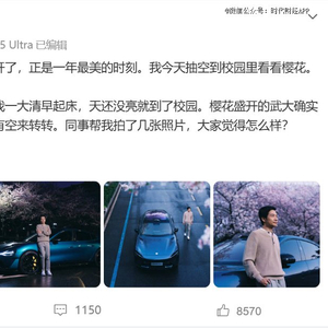 不过小米在港股的表现并没有影响小米创办人,董事长兼CEO雷军的心情。3月25日下午,雷军发布微博称“我今天抽空到校园(武汉大学)里看看樱花”,并配上了与小米SU7、樱花的合照。