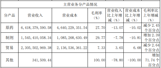 贸易业务难中有为。公司积极应对海外市场去库存、地缘政治冲突等多种挑战,把握制剂需求增长契机,通过加大核心市场开发,强化自营出口,创新业务模式,加快推进全球登记布局,销售额同比增长 4%。