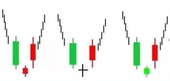 两阳夹一阴既是上涨中继信号,也是底部反转信号,技术特征主要有3点:1)它是由三根K线组合而成;2)第一天收出一个大阳线或中阳线,第二天下行收出一根实体与第一天差不多的阴线,第三天收出一根大阳线或中阳线,实现技术反包;3)两阳夹一阴存在技术变形,强势程度也不相同,如下图所示。